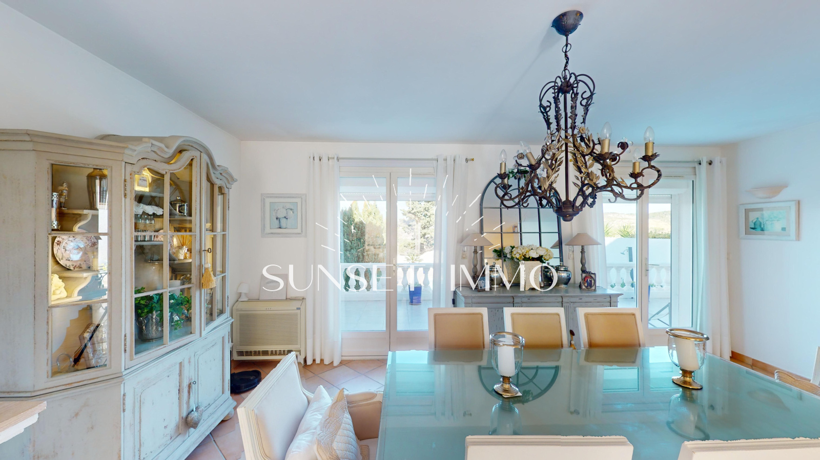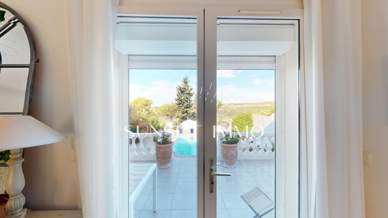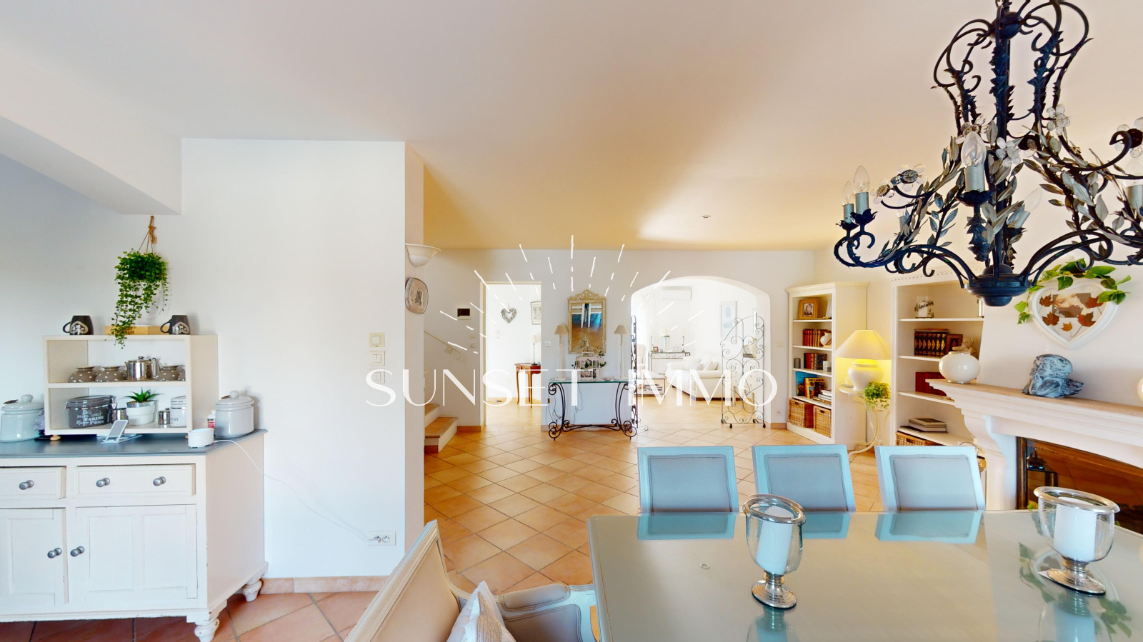Le séjour s'ouvre sur une vaste terrasse de 35m2, surplombant la piscine et les collines environnantes, un cadre idéal pour vos repas en plein air ou vos instants de relaxation.