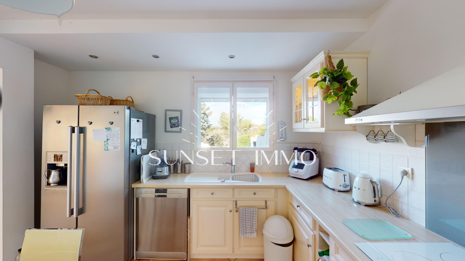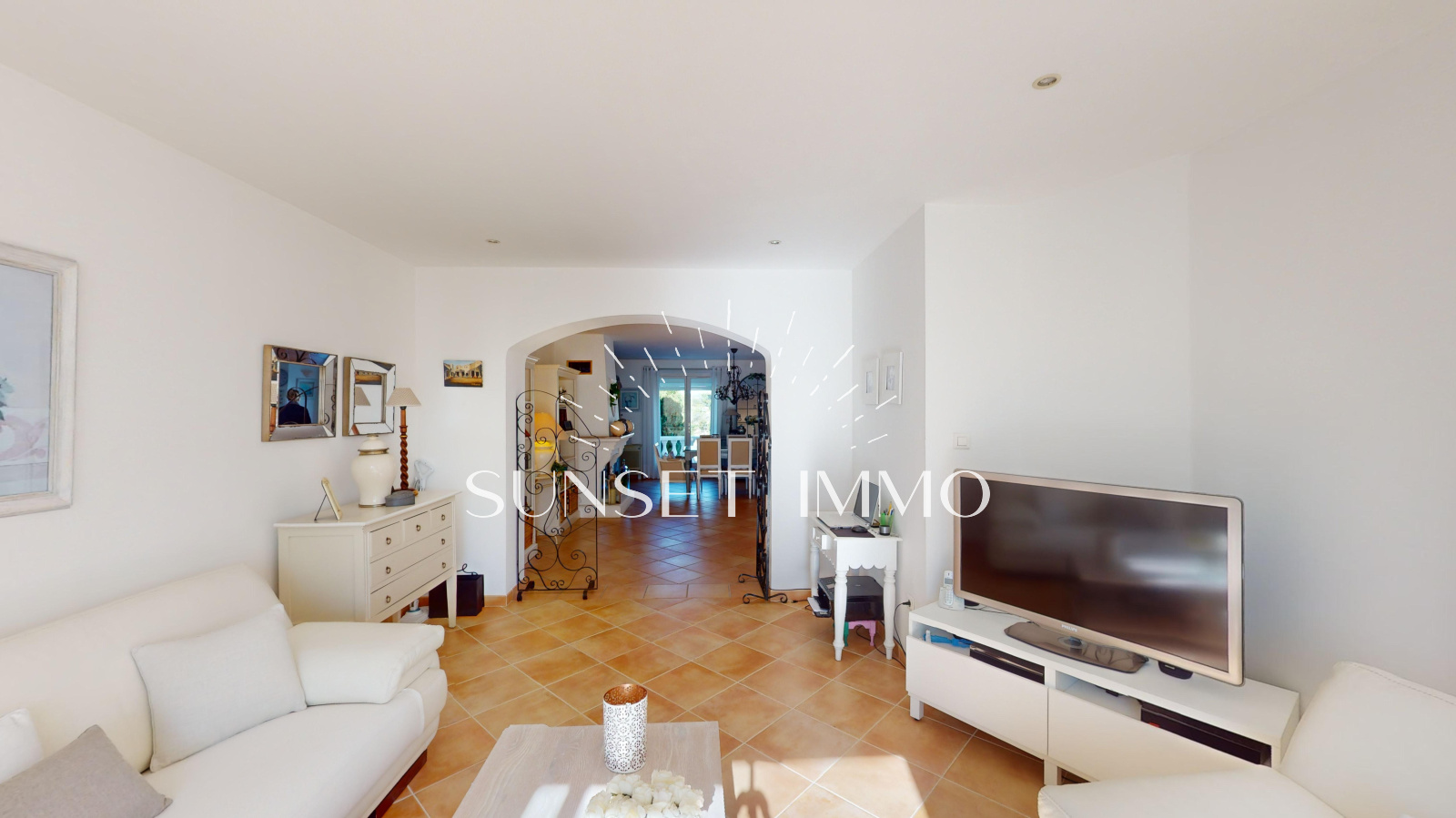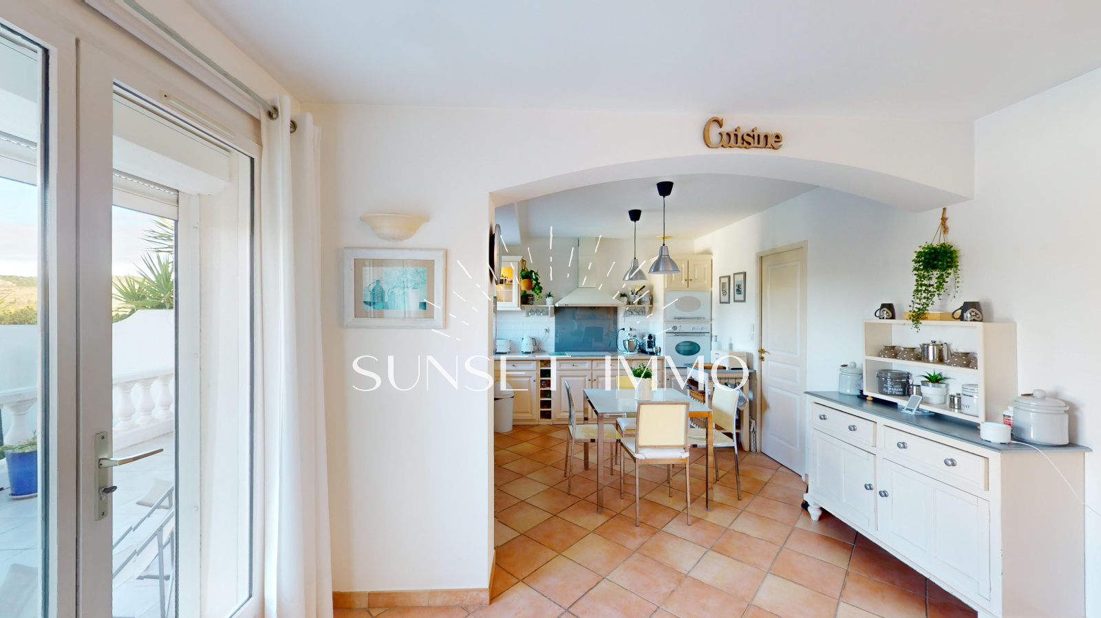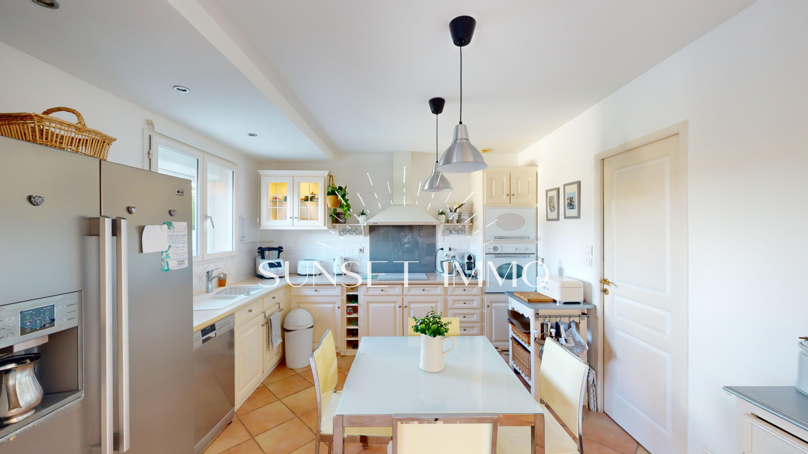 Le séjour s'ouvre sur une vaste terrasse de 35m2, surplombant la piscine et les collines environnantes, un cadre idéal pour vos repas en plein air ou vos instants de relaxation.