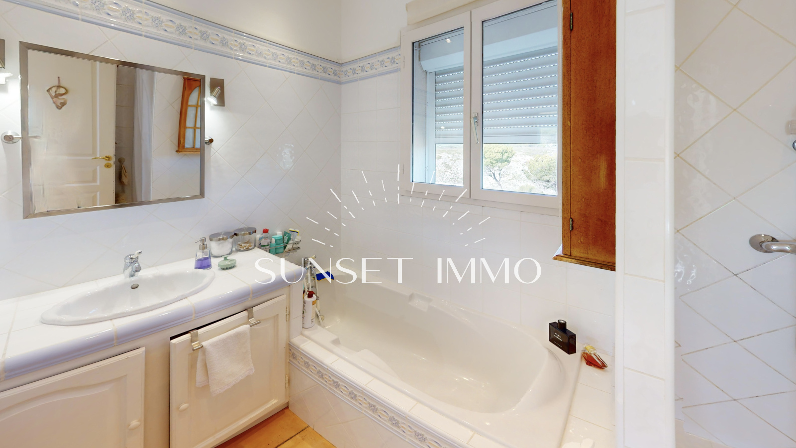 À l’étage, la maison propose : un dressing, trois belles chambres, dont une superbe suite parentale avec accès direct à une terrasse privative offrant une vue imprenable sur la mer.