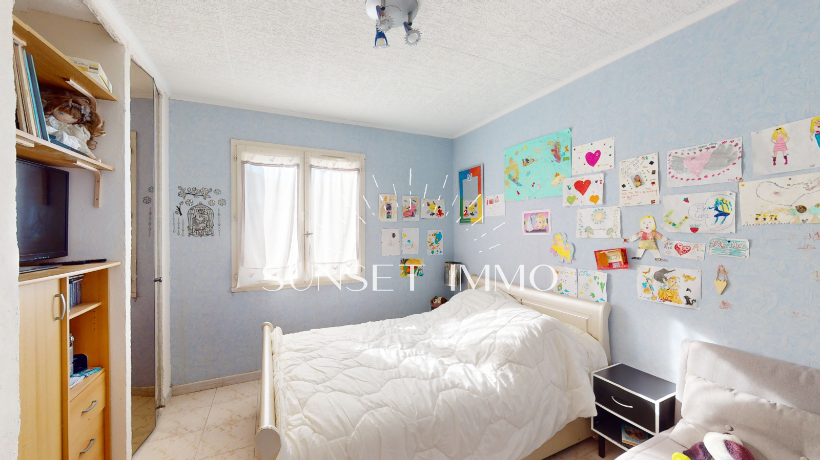 Dans l'espace nuit, on y trouve 3 chambres, une salle d'eau et un wc séparé.