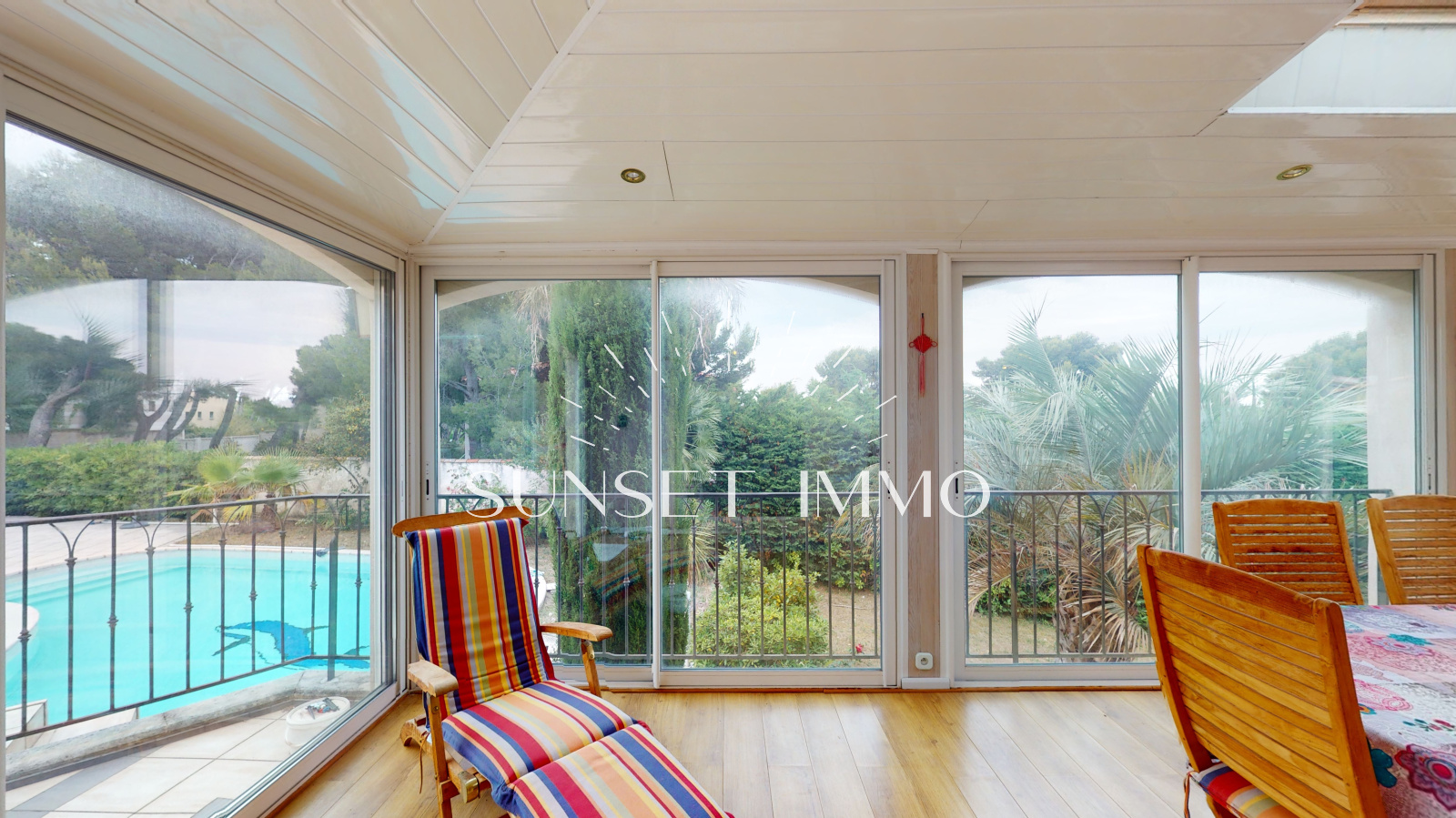 A l'étage, une belle suite parentale avec terrasse de 13 m², un coin bureau et sa vue mer. Toutes les pièces donnant sur la terrasse sont baignées par les rayons du soleil tout au long de la journée. Au rez-de-chaussée, vous trouverez 2 chambres dont une avec terrasse, deux salles d'eau et un wc séparé. Le ravissant terrain arboré et paysager de 1314 m² comprend quant à lui, de nombreux coins intimistes ainsi qu'une grande piscine plein sud avec pool house et une cuisine d'été avec wc, le tout dominé par une terrasse de plus de 95 m² plein sud.